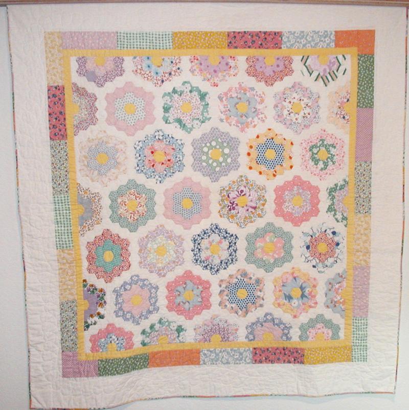 the ‘30’s era. It is hand pieced and every other hexagon is hand