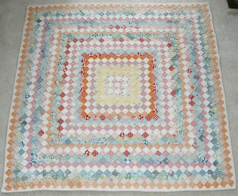 diamonds and the Hour Glass quilt pattern. Slight fading in some of