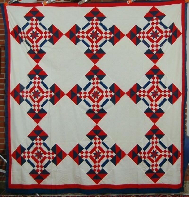 Lovely patriotic quilt top in an unusual Compass Star pattern