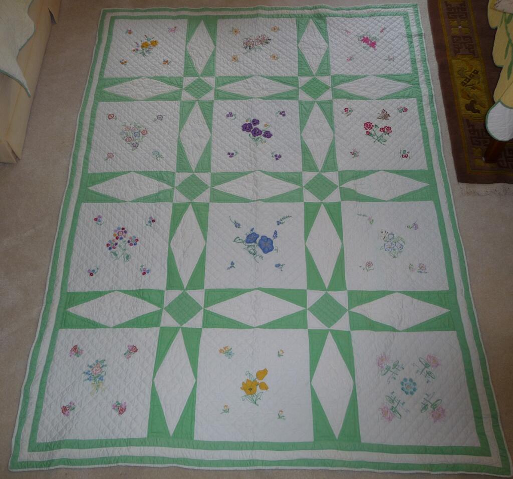 the 1930s. It is hand quilted at approximately 8 stitches per inch.