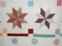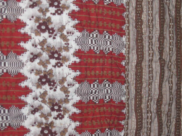print diamonds have faded. Elaborate hand quilting at 9-10