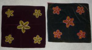 backgrounds of maroon and navy velvet to show off the stumpwork of
